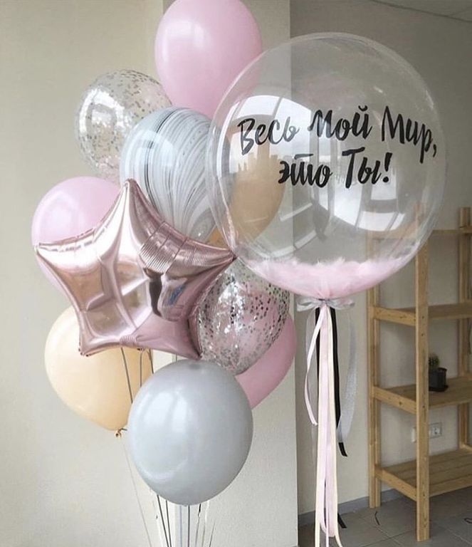 - Шар баблс 24" с перьями и надписью на грузе;