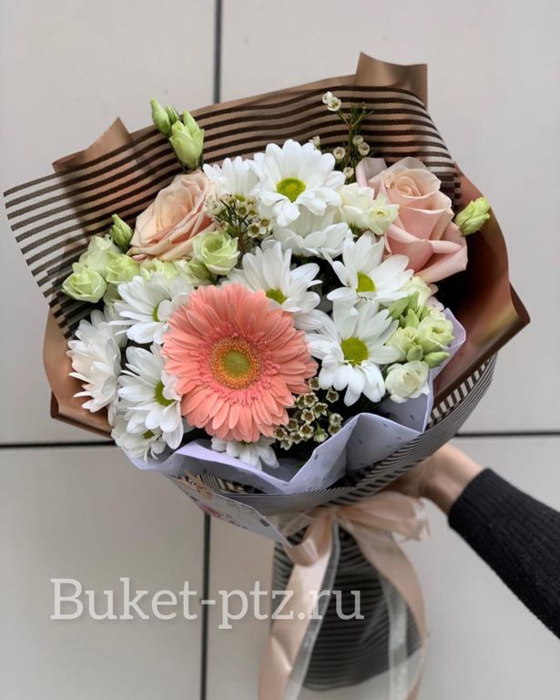 Вы можете внести изменения в композицию (изменить цветовую гамму букета, определенные детали, упаковку, добавить ваши любимые цветы и т.п.). Ваш букет будет собран из свежих, сезонных цветов.