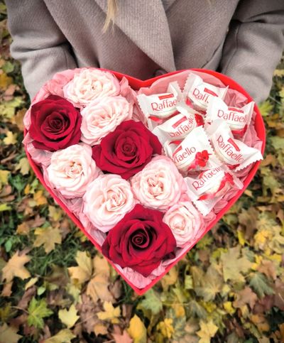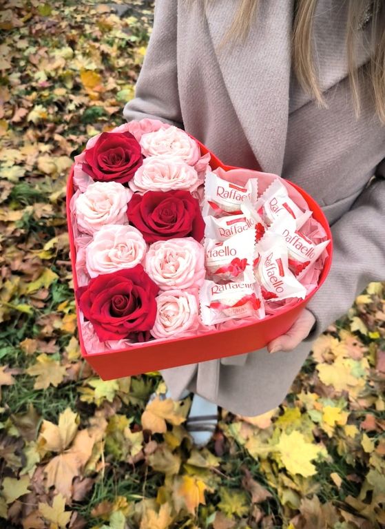Композиция с конфетами в коробке "Сердце"