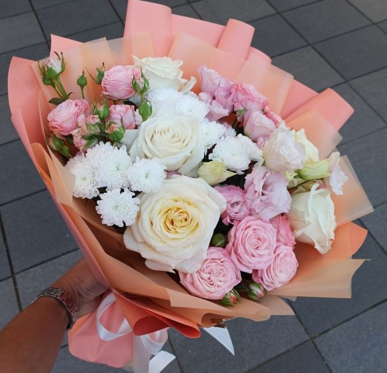 Вы можете внести изменения в композицию (изменить цветовую гамму букета, определенные детали, упаковку, добавить ваши любимые цветы и т.п.). Ваш букет будет собран из свежих, сезонных цветов.