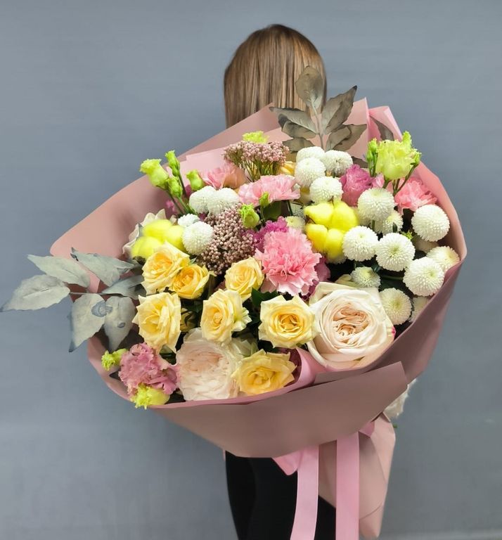 Вы можете внести изменения в композицию (изменить цветовую гамму букета, определенные детали, упаковку, добавить ваши любимые цветы и т.п.). Ваш букет будет собран из свежих, сезонных цветов.