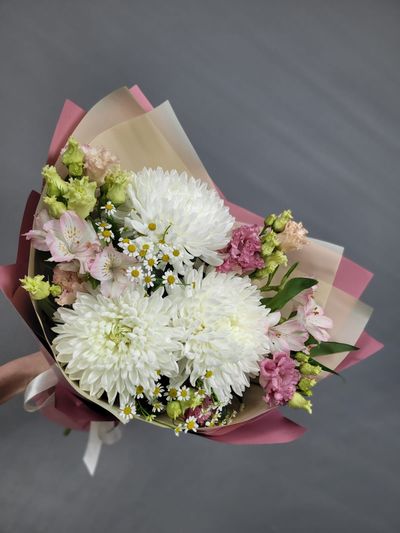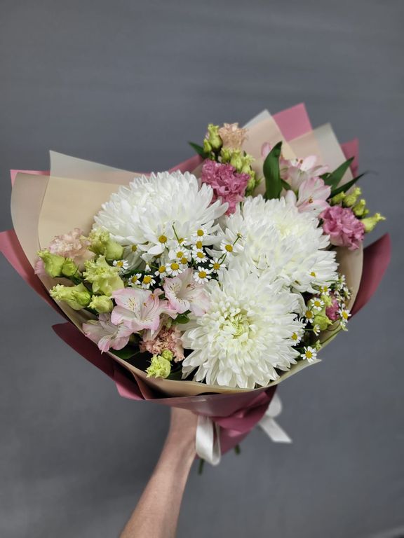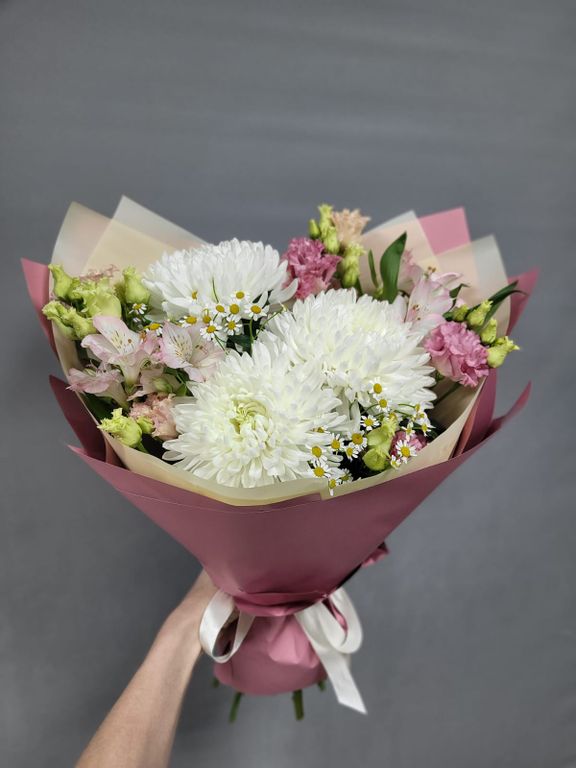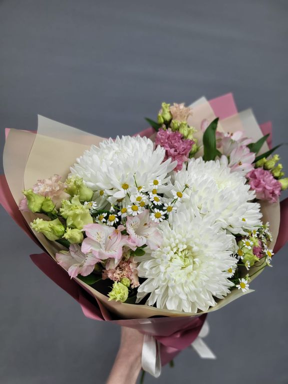 Вы можете внести изменения в композицию (изменить цветовую гамму букета, определенные детали, упаковку, добавить ваши любимые цветы и т.п.). Ваш букет будет собран из свежих, сезонных цветов.