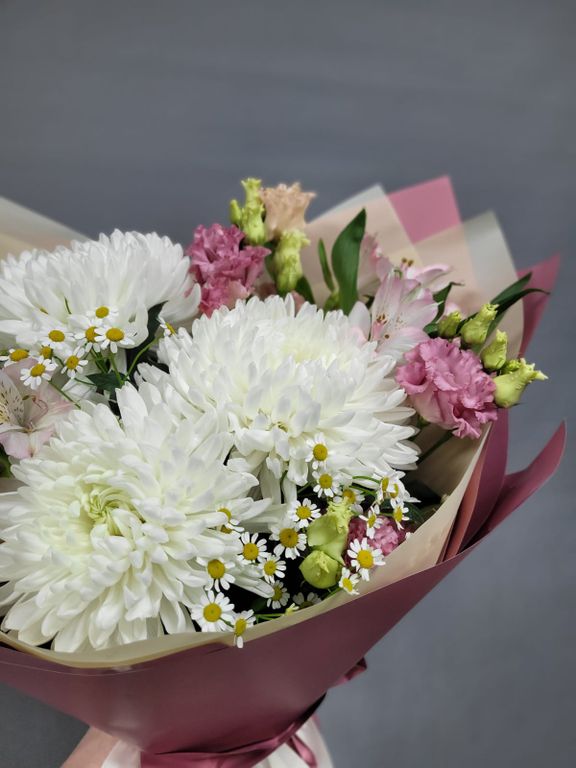 Букет из одноголовых хризантем "Фурия"