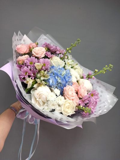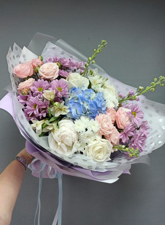 Букет с гортензией "Северное сияние"