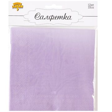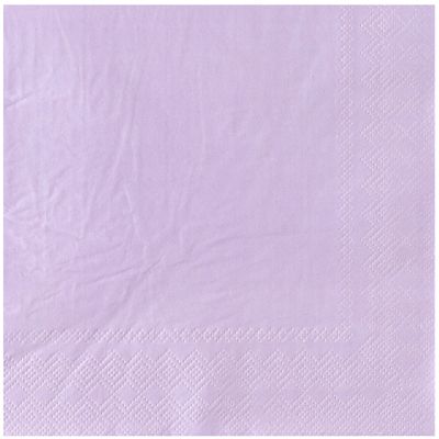 Двухслойная салфетка лавандового цвета. Используется совместно с другими элементами коллекции по дизайну (тарелки, стаканы и т.п.) как украшение стола или по своему непосредственному назначению. В упаковке 12шт, размер 33см.