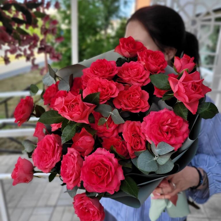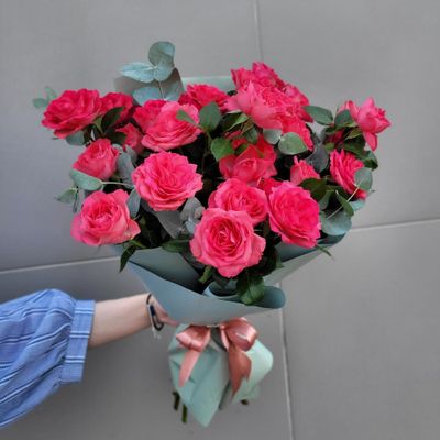 Добавить в избранное Убрать из избранного Букет из кустовых роз "Белла Линда" 3 260 ₽ 3 460 ₽ Состав: Роза кустовая - 5 шт. Эвкалипт - 2 шт. Лента атласная - 2 шт. Упаковка дизайнерская - 2 шт. Состав: Роза кустовая - 5 шт. Эвкалипт - 2 шт. Лента атласная - 2 шт. Упаковка дизайнерская - 2 шт.
